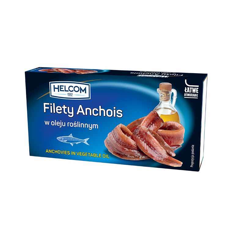 Filety anchois. Anchois to małe, tłuste rybki – sardele europejskie. Anchois są słone i pikantne, dlatego używa się ich w niewielkich ilościach jako dodatku do farszów mięsnych i rybnych, pizzy czy sałatek, do nadziewania oliwek oraz do past kanapkowych i dań z makaronem.