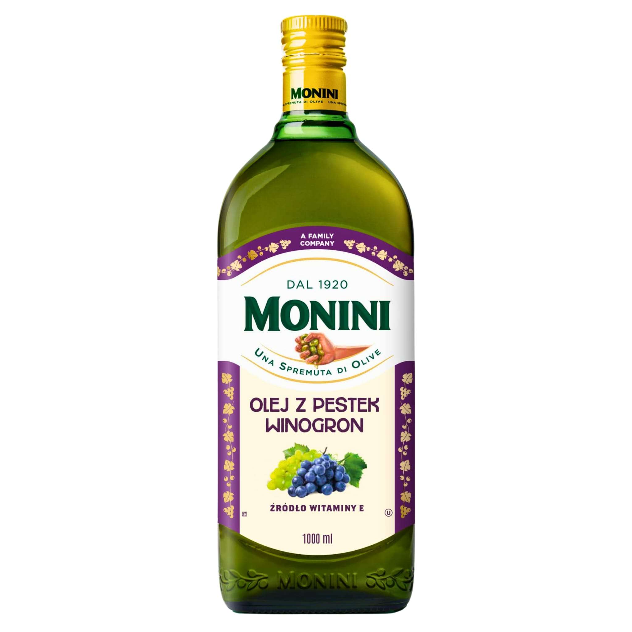 Olej z pestek winogron Monini to niezwykle popularny wśród Polaków olej do smażenia, pieczenia i grillowania. Potrawy smażone na oleju z pestek winogron zachowują delikatny smak, są lekkie i chrupiące. Olej ten jest praktycznie bezwonny, w związku z czym nie zmienia naturalnego smaku przygotowywanej potrawy i nie nadaje tłustego posmaku. Temperatura idealna do smażenia na oleju z pestek winogron to 160°C.