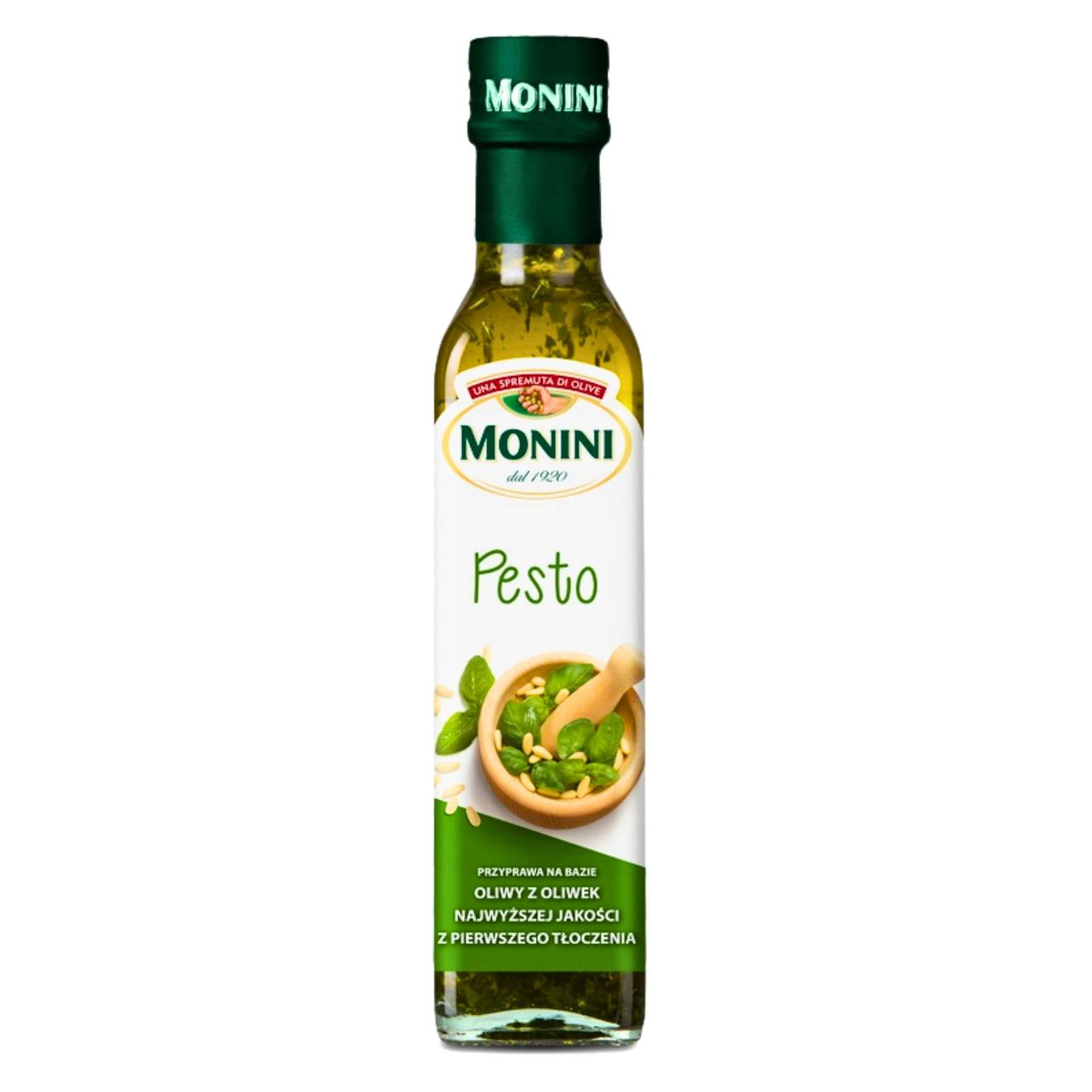 oliwa z oliwek najwyższej jakości z pierwszego tłoczenia (97%), orzeszki piniowe (1,5%), bazylia (0,5%), aromat (1%)