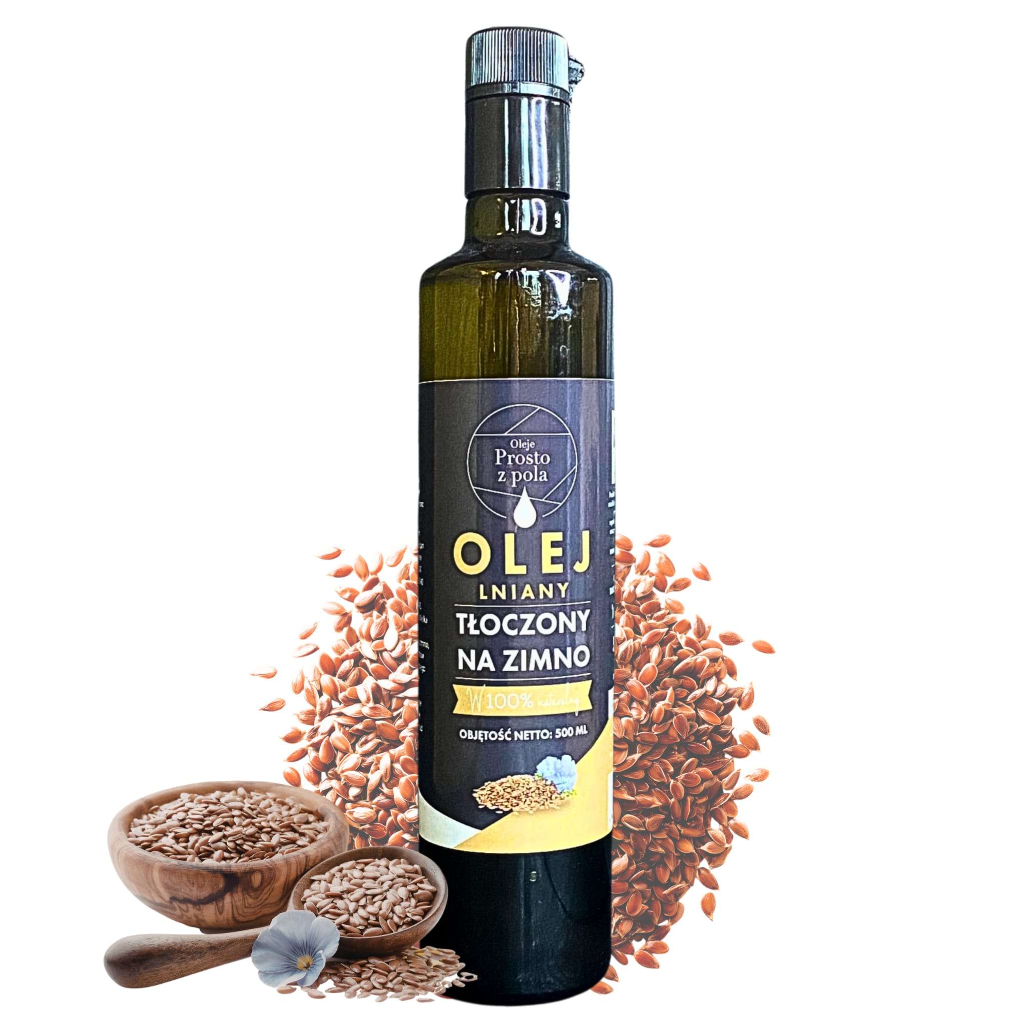OLEJE PROSTO Z POLA OLEJ LNIANY 500ML tłoczony na zimno nierafinowany